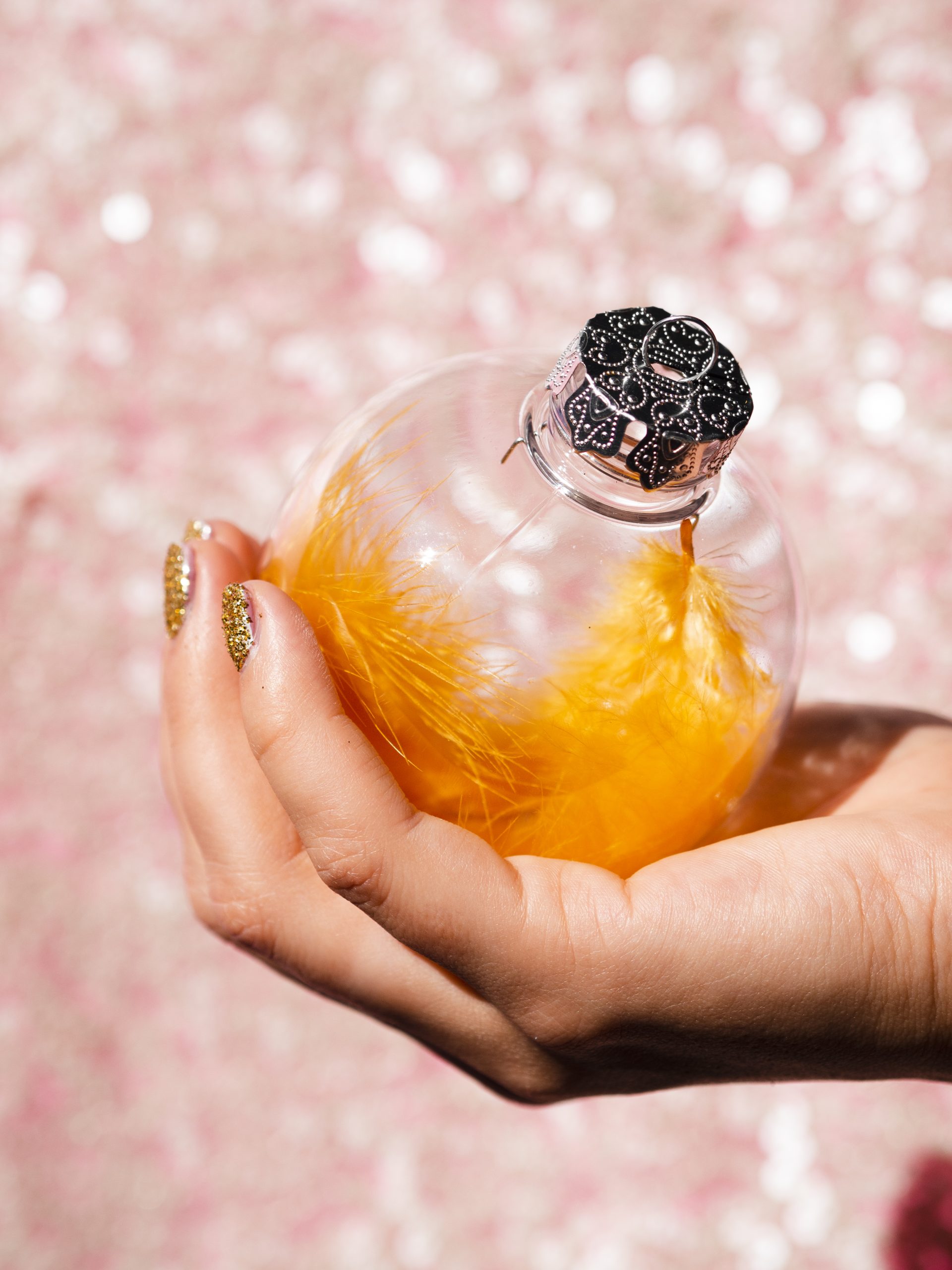 Light as air and bold in spirit, Feather Bloom is a playful yet elegant perfume for women. Encased in a round transparent bottle with a striking black and silver cap, this fragrance features vibrant yellow feathers that symbolize freedom and flair. The scent is a blend of citrus sparkle and soft florals, perfect for those who love to stand out with grace.
